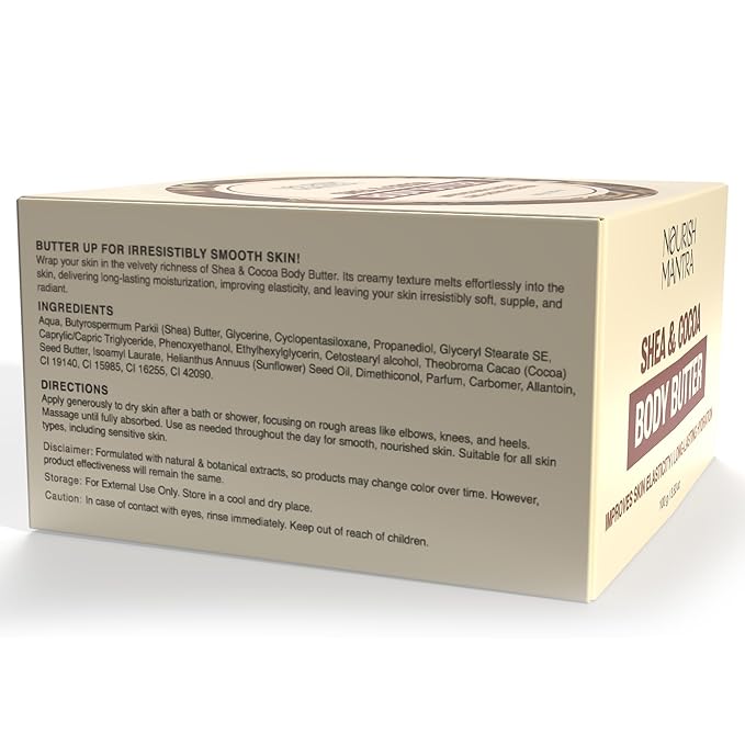 NOURISH MANTRA Shea & Cocoa Body Butter | Creamy Moisturizer for Long-Lasting Moisture & Soft Skin | Infused with Shea Butter & Cocoa Butter | Suits All Skin Types | For Women & Men | 100 g