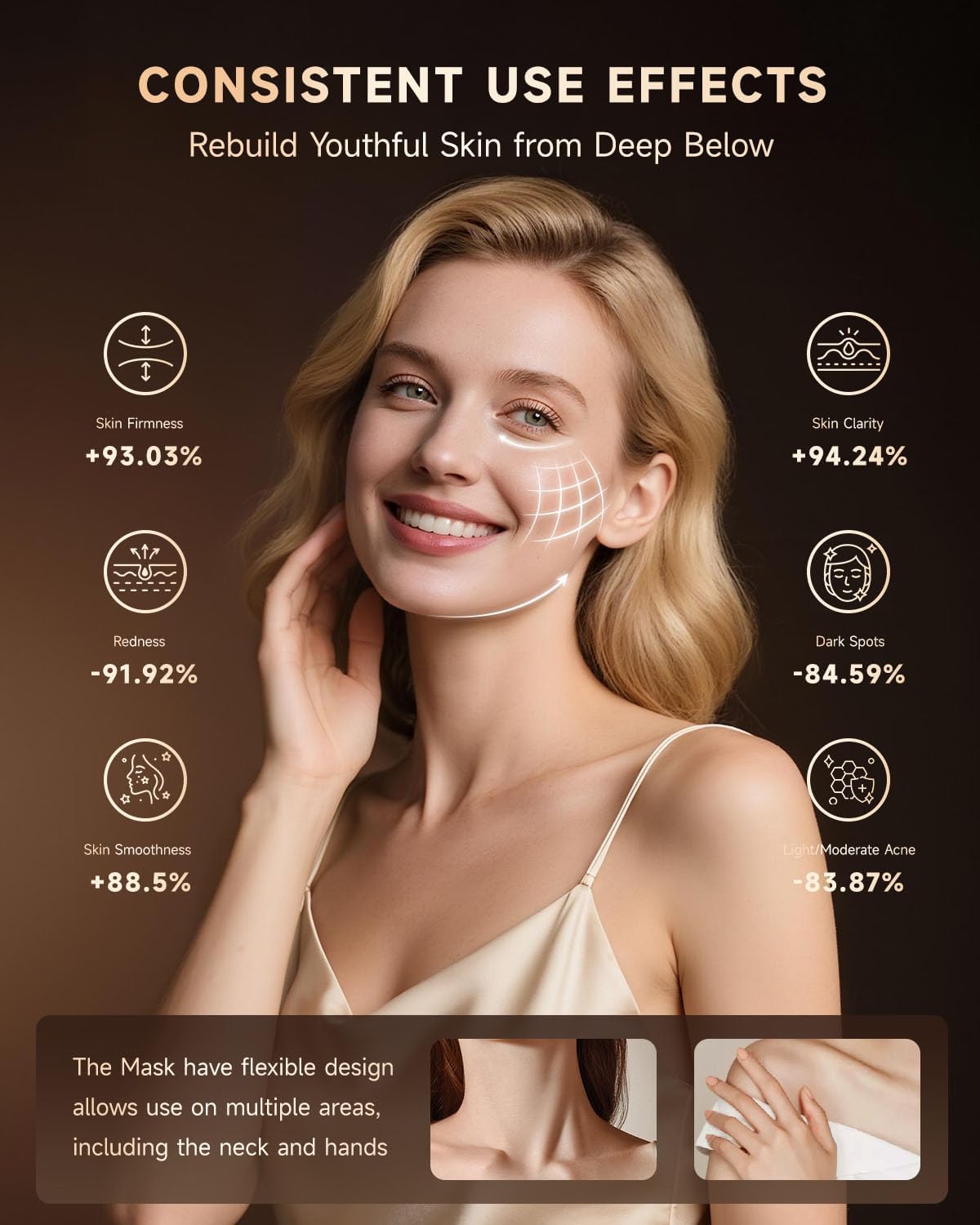 - Full Body Red Light Therapy Versatility - Not just for your face, this flexible red light therapy mask transforms into a spot treatment for neck, hands, chest, or knees. Using a combination of 630nm red light (skin repair) and 850nm infrared light (muscle recovery), it delivers powerful red light therapy for body and face in one convenient device