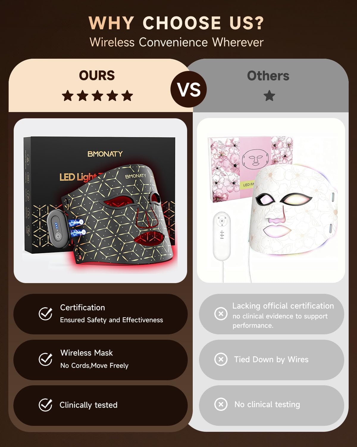 - Confidence You Can Trust, Beauty You Can See - The Wireless LED Mask delivers more than just luminous skin; it reassures you. Made from skin-friendly silicone, at home skincare essential fits seamlessly into your routine. Enjoy 15 minute sessions, 3–5 times a week, and step into a brighter, more confident you. This isn’t just skincare, it’s self care