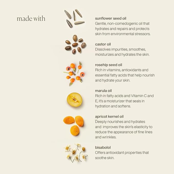 - HYDRATING FORMULA: Cream-to-oil cleanser made with 17% nutrient-rich oils & butters (sunflower, castor, tamanu, coconut, shea, cocoa) to deeply moisturize and leave skin soft without stripping its natural balance.