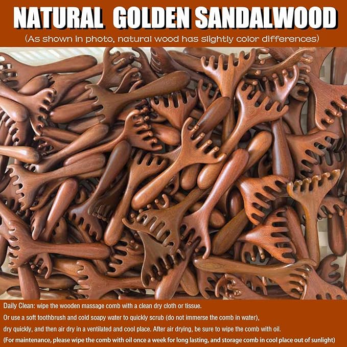 - Wooden Massage Comb: Sandalwood, fine-grained, well polished, gentle for skin, scalp, feet and neck, comfortable to hold in hand, multifunctional for scalp masssage and neck massage, feet massage, and leg massage