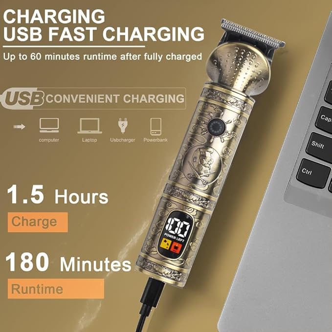 - Smart Display and USB Charging Support: Hair Clipper Engaged with a patented heavy-duty motor, providing long-lasting shaving without generating additional heat and noise, and a powerful lithium battery charged through USB, 1.5 hours full charging time for 180 minutes operating time. The cordless design, LED display and one-key lock make it the best friend in your travel and business trips