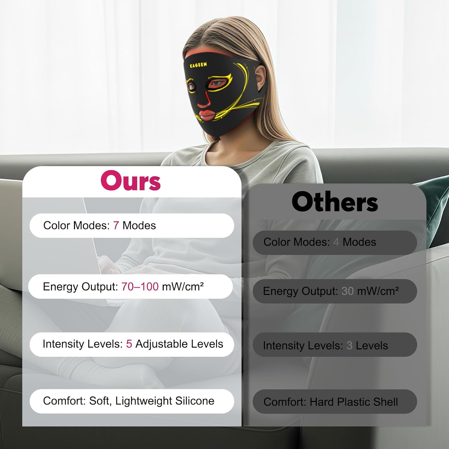 - 【Soft, Lightweight & Comfortable】Made from skin-friendly, flexible silicone and weighing just 268g, the mask sits gently without slipping or pressure. Hands-free comfort lets you relax, read, or unwind while enjoying your session.