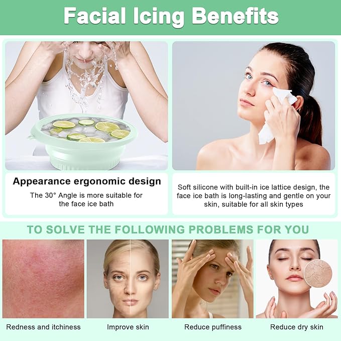 - Built-In Ice Tray: Safe, Hygienic & Easy to Clean face bowl made of premium & Durable Silicone. Compared with other materials, it is more resistant to falling and tearing. It is soft and comfortable. It is your best companion for facial ice bath.