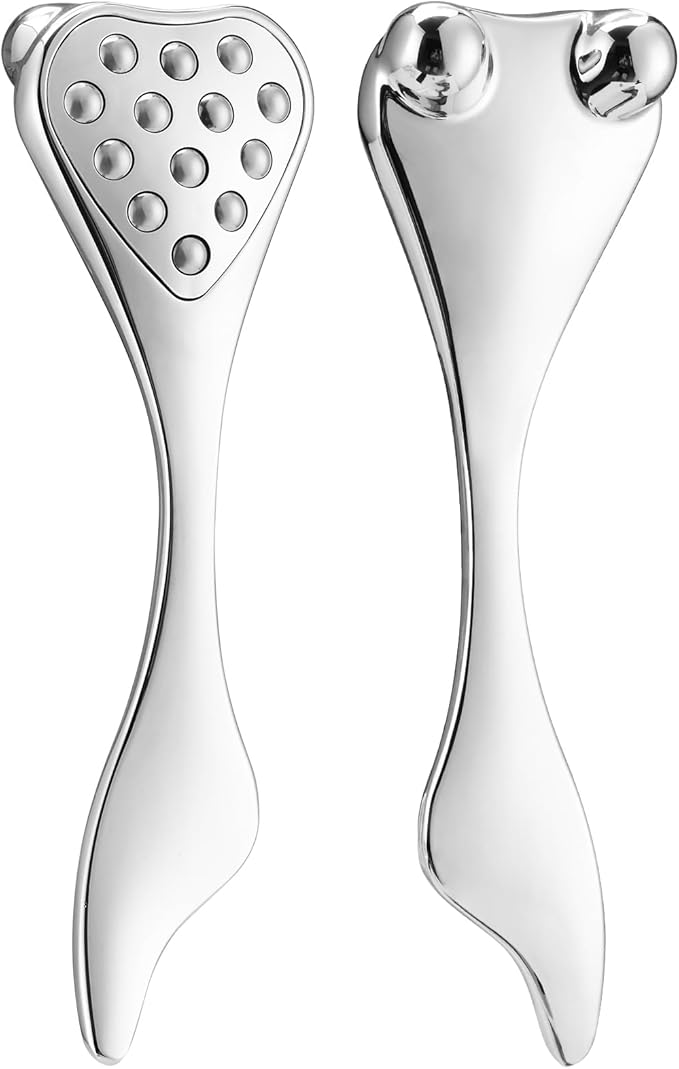 - 4-in-1 Multifunctional Face Roller: Combines a facial massager, gua sha tool, nose contour corrector, and lymphatic drainage tool in one sleek metal design. The rotatable 360° rollers glide smoothly to lift, sculpt, and rejuvenate skin, while the ergonomic handle ensures perfect pressure for reduced puffiness and enhanced glow.